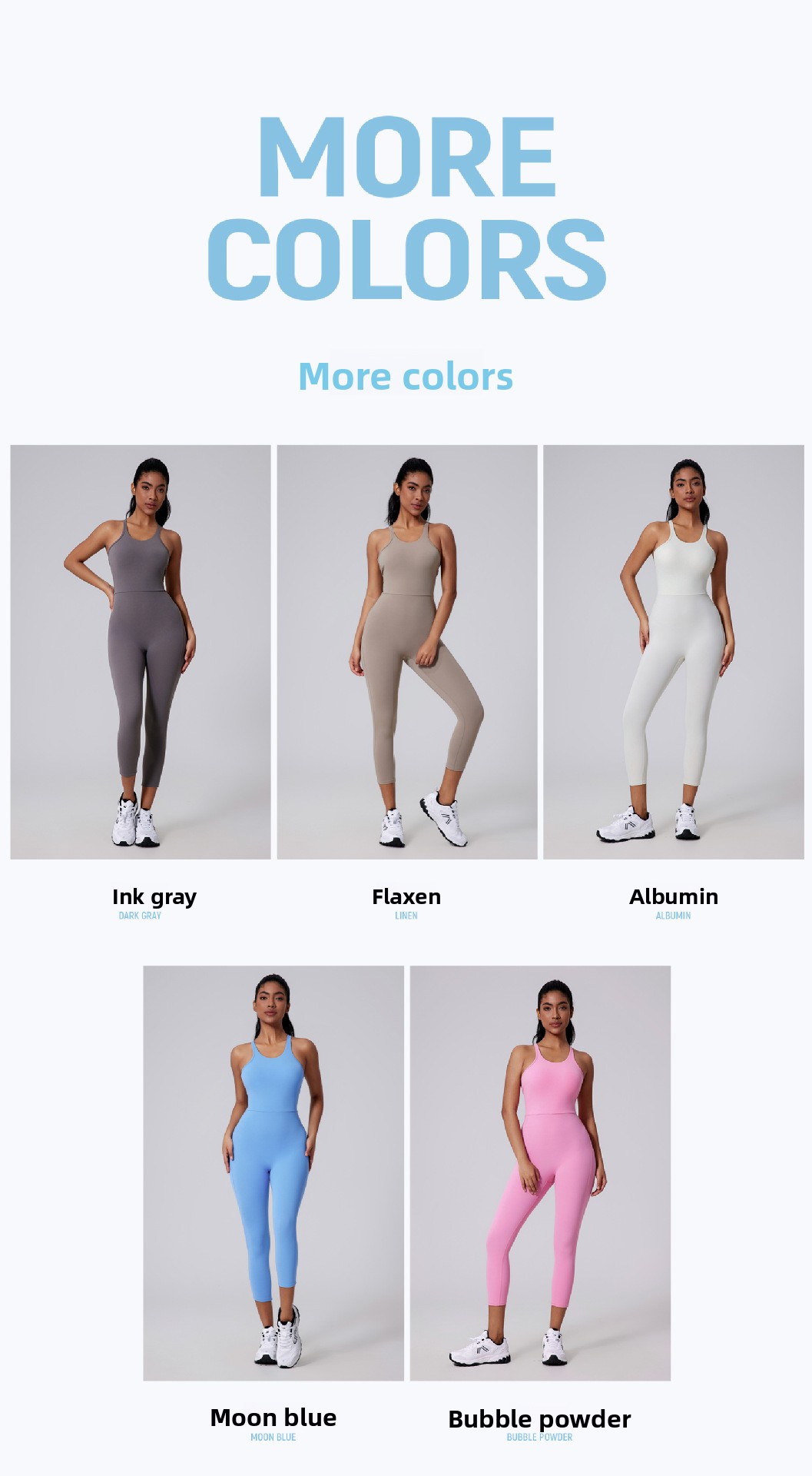 Colors: Dark Gray, Flaxen, White Protein, Moon Blue, Bubble Pink